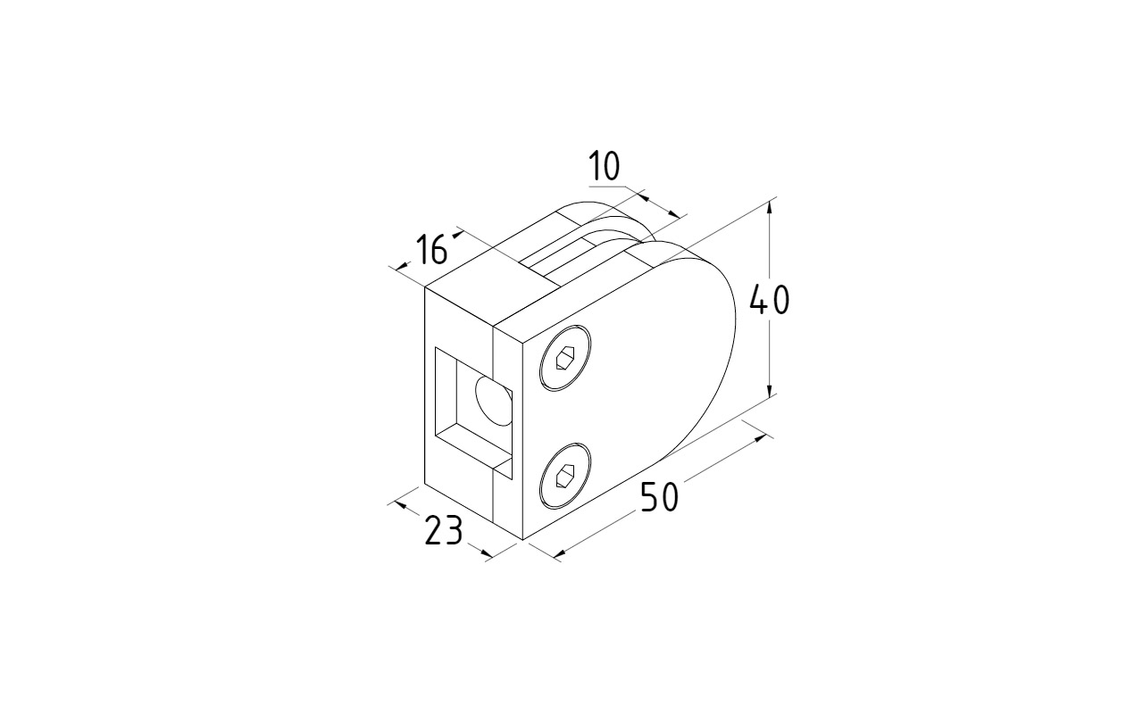 Стеклодержатель литой, под стекло 8-10 мм (4+4 мм), на плоскость 40х23х48 полированный (AISI 316) k002-4