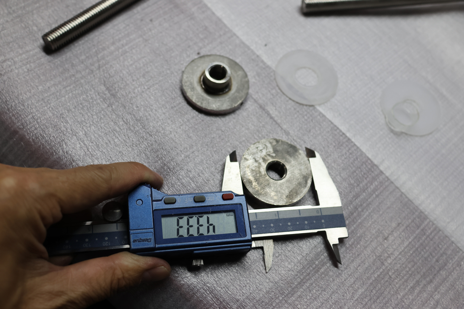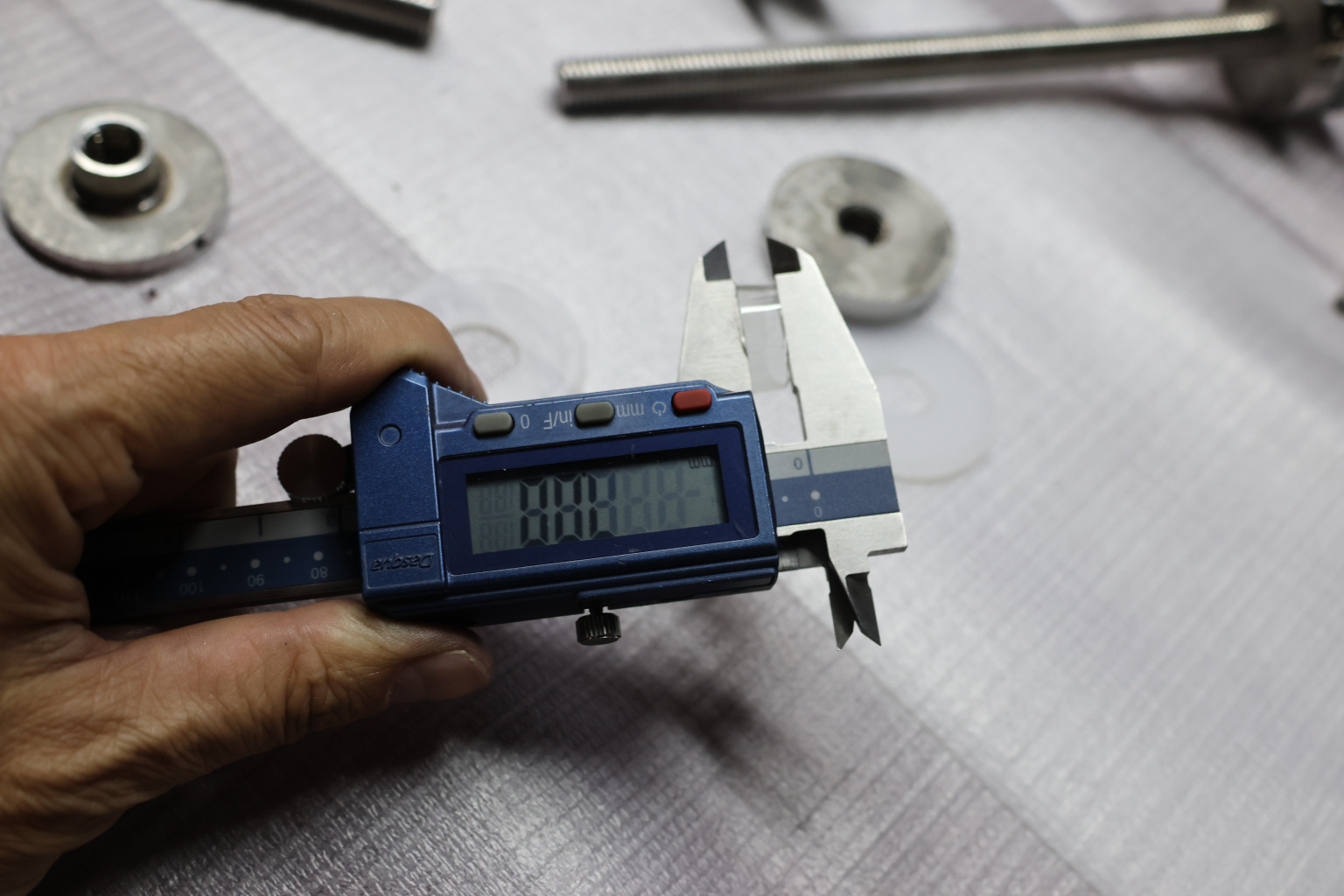 Точечный стеклодержатель для торцевого крепления несущего стекла в диапазоне от 8 (5+5) мм до 18 (8+8) мм. Диаметр наружной и внутренней шайб по 44 мм.