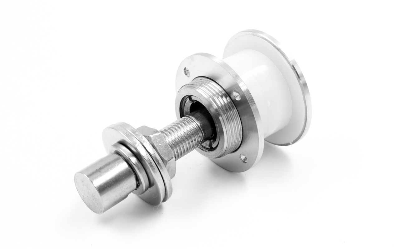 Рутель для вантового крепления козырьков, разборный, под стекло от 10 до 26 мм, полированный, диаметр внешнего кольца 50, шпилька. Марка стали - AISI 316