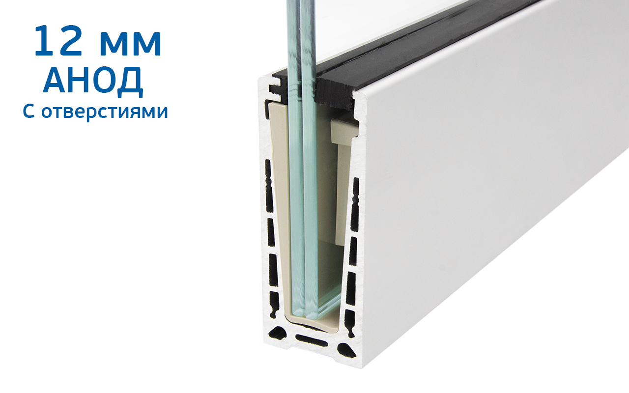 Комплект анодированного профиля под стекло 12мм и 6+6мм входит: