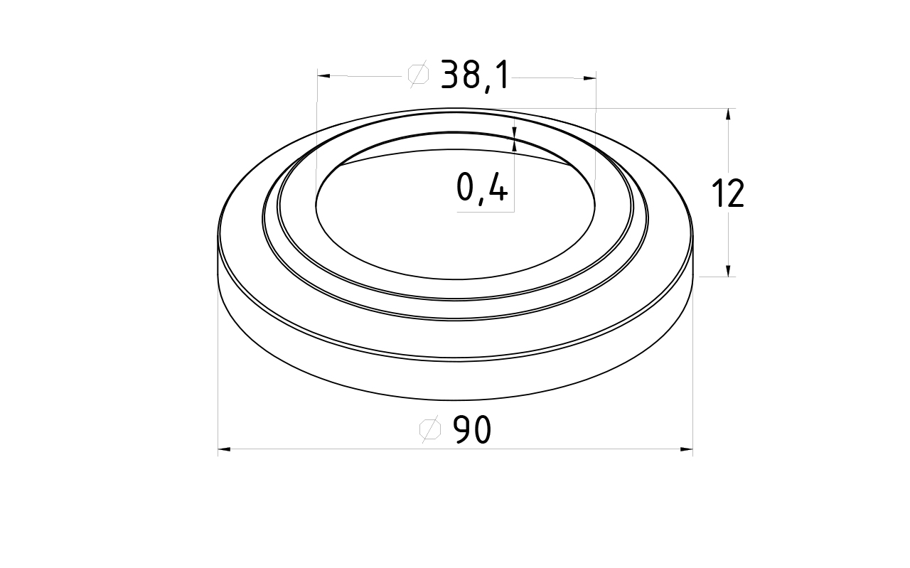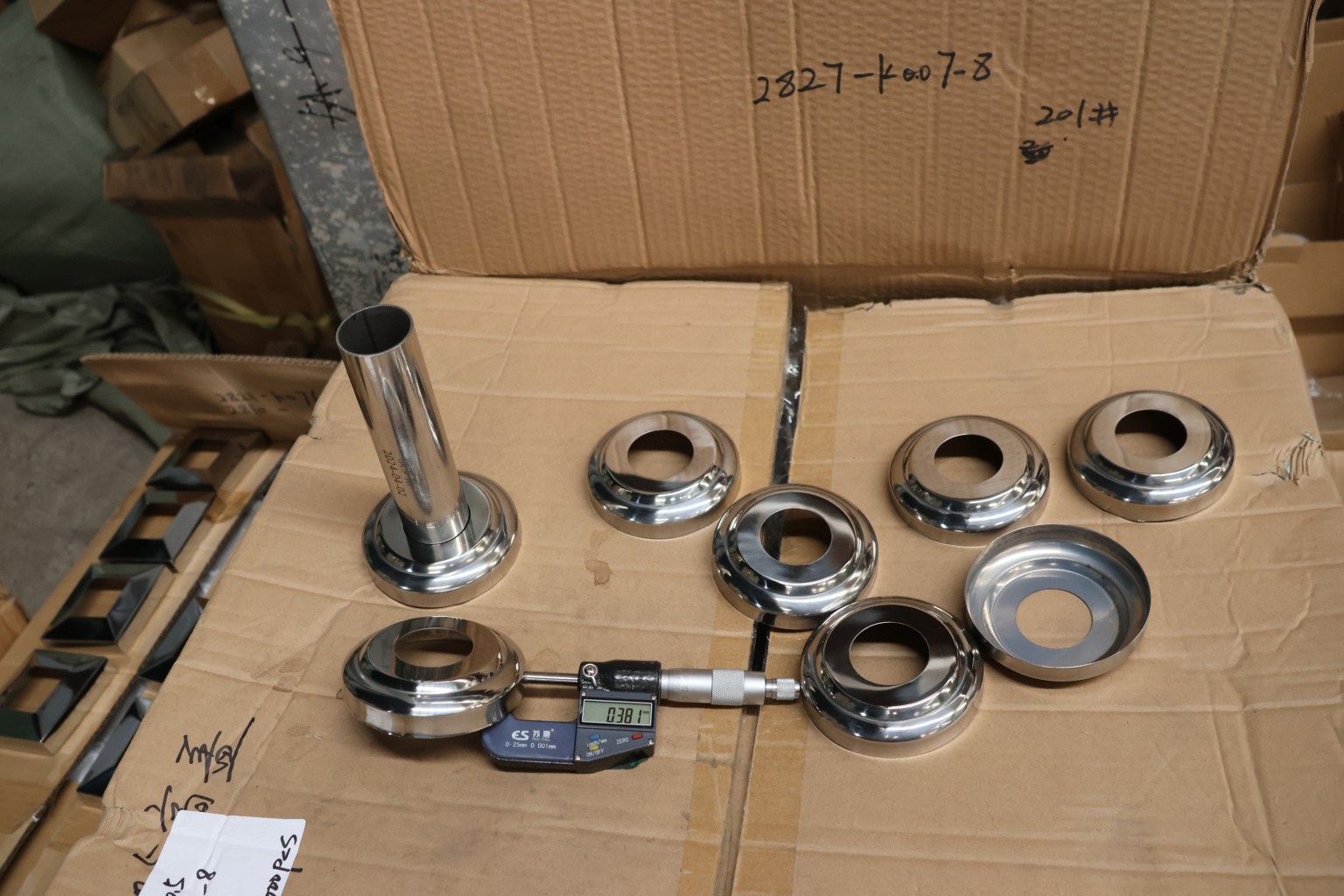 Низ стойки Ø38.1 мм, S=0,4 мм, внешний Ø90х12 мм, полированный 400# AISI 201 k007-8
