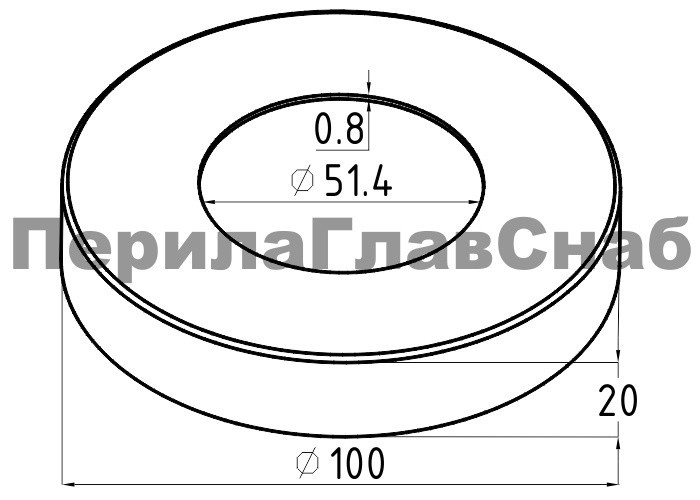 Низ стойки Ø50.8 мм, 100х18.5х0.8 мм, полированный, (AISI 304)