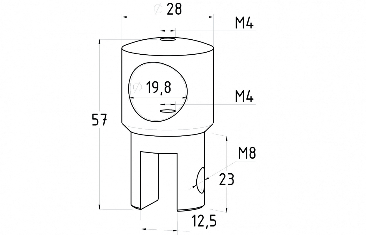 Держатель стекла торцевой, труба 19мм ПВХ, стекло 8-10 мм, прокладка 0,5 мм (прозрачная).