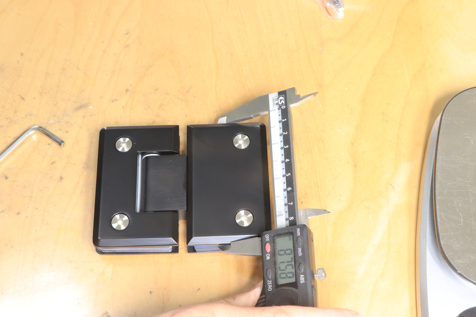Петля стекло-стекло для соединения стеклянной двери с неподвижным стеклом под углом 180°. Поворот петли в обе стороны с фиксацией на 90º. Масса двери может составлять до 35 кг на две петли.