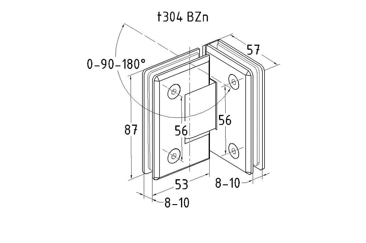 Петля для душевой стекло-стекло 90х55 мм, 90°, цинк, черный t304 BZn