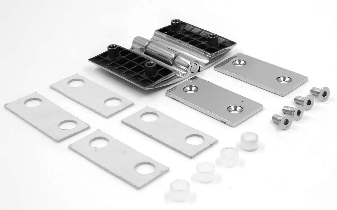 Предназначена для крепления стеклянной двери на стеклянную перегородку душевой кабины под углом 180º.