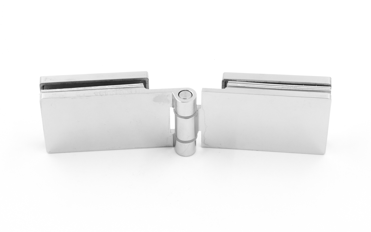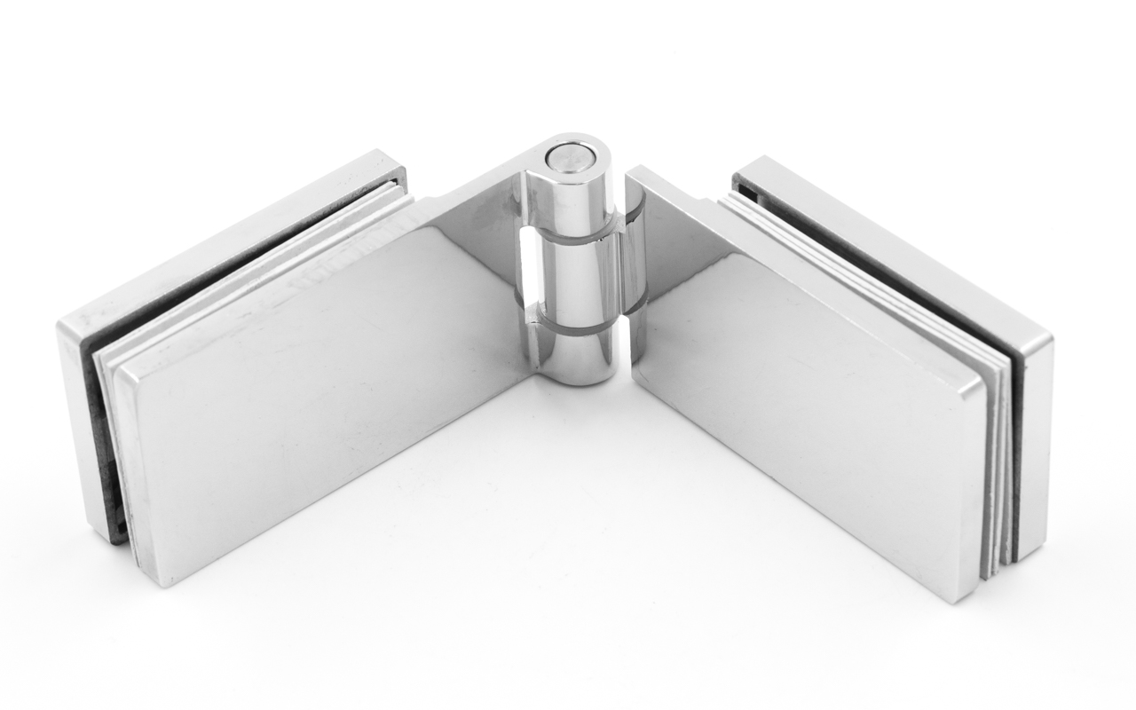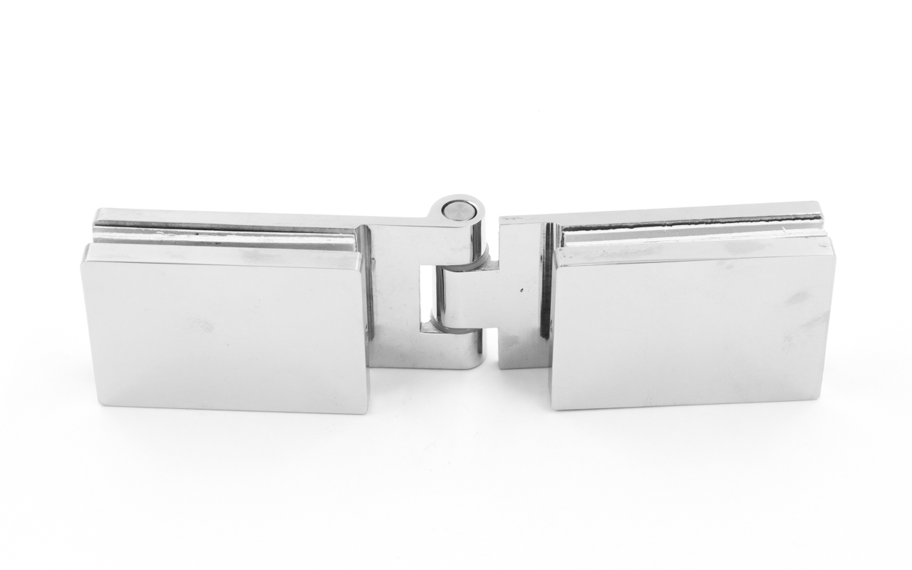 Предназначена для крепления стеклянной двери на стеклянную перегородку душевой кабины под углом 180º.
