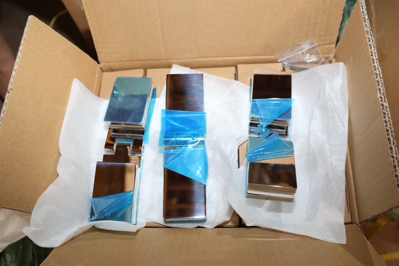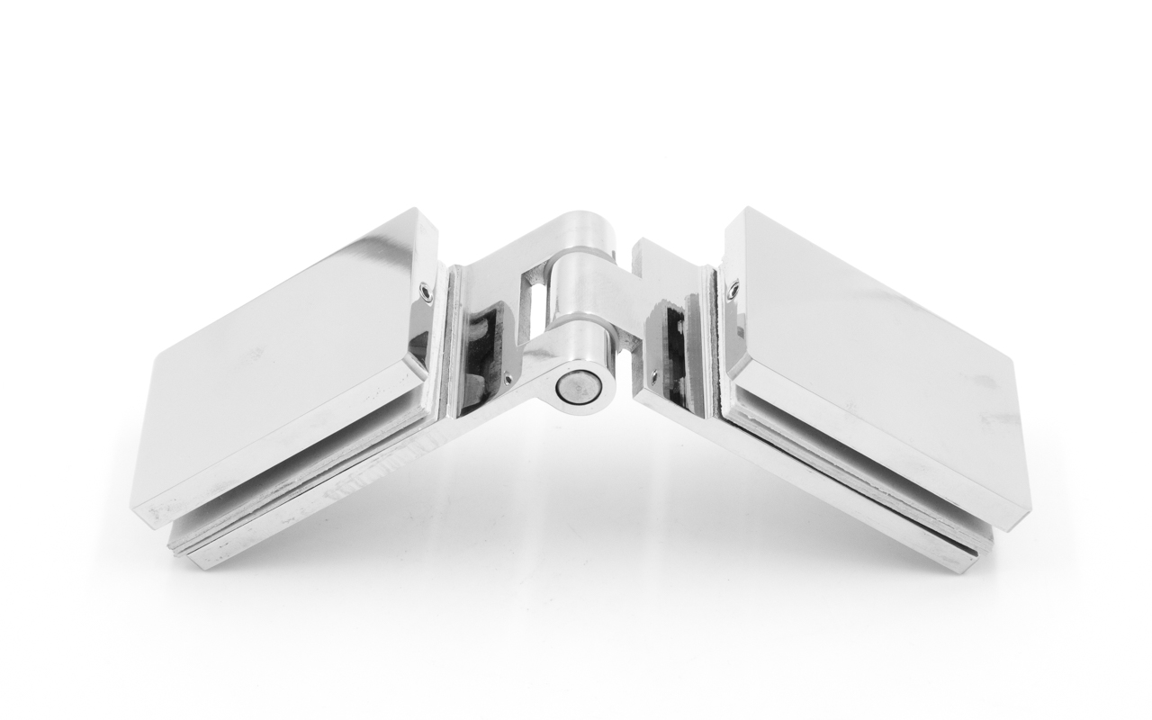Петля для душевой кабины стекло-стекло, поверхность - полированная, выдерживает нагрузку 35 кг на две петли, марка стали - AISI 304.