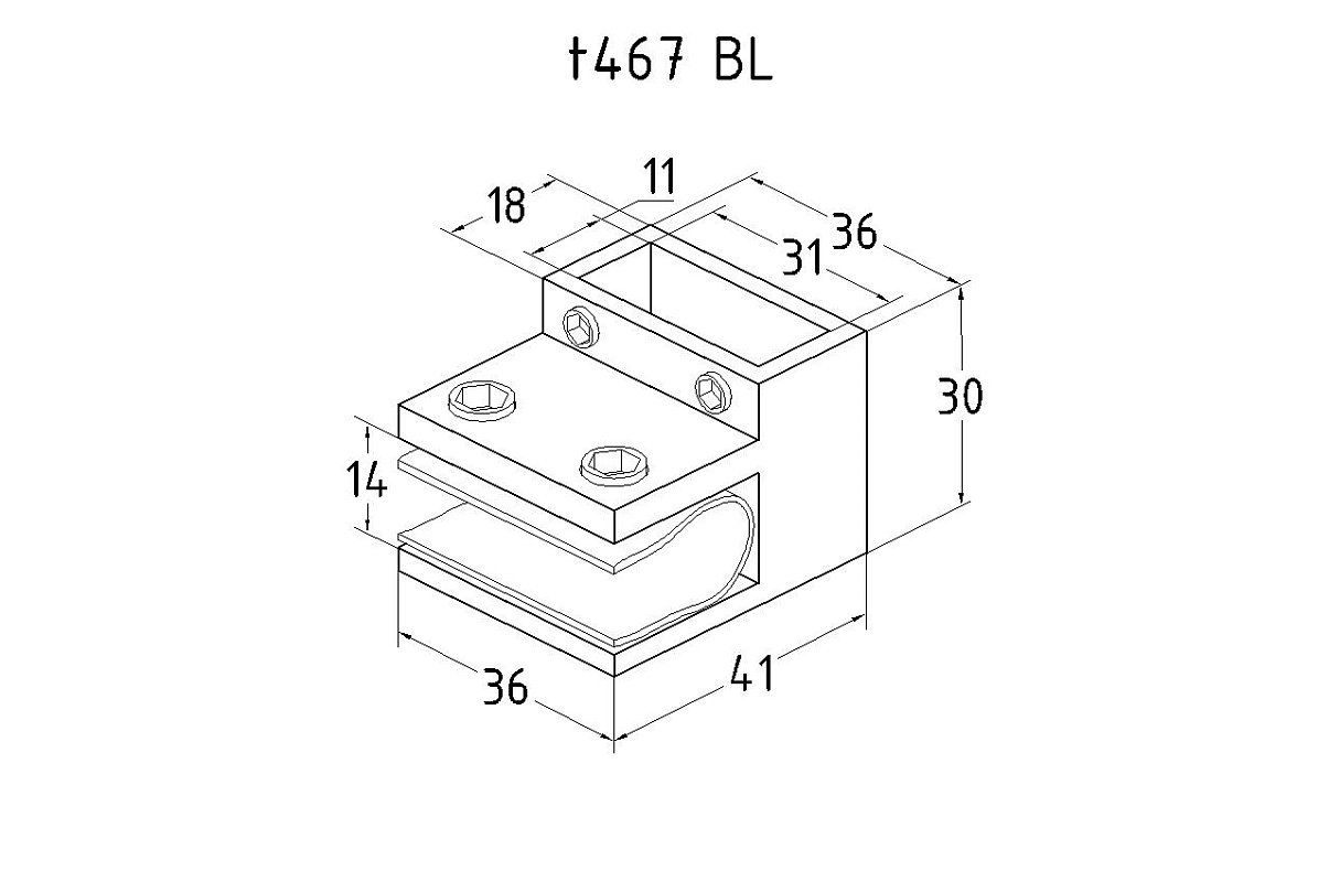 Коннектор торцевой труба-стекло 30х10 мм, нержавеющая сталь AISI 304, черная t467 BL