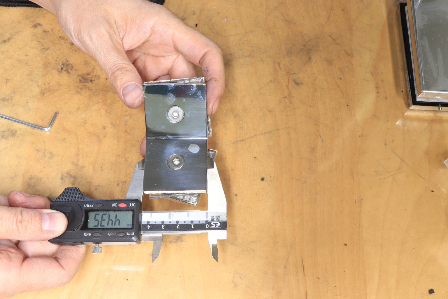 Фиксируется с помощью шестигранника, винтов. Отверстие в стекле нужно подготовить заранее (идут в комплекте, под стекло 8-10 мм)