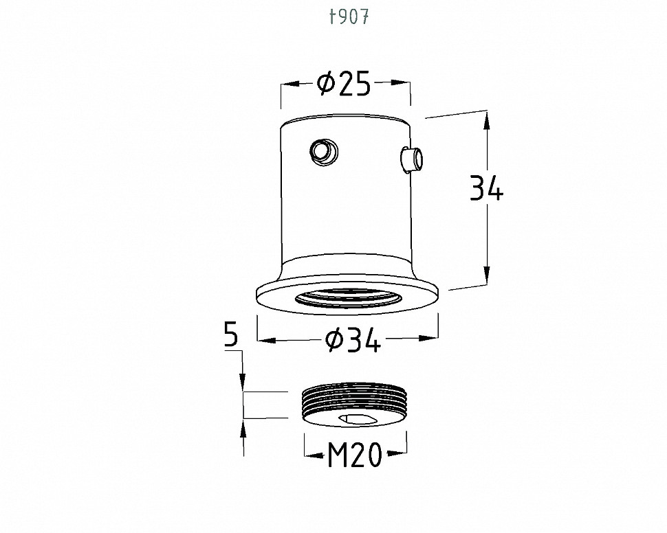 Держатель трубы 19 мм, полированный, латунь-хром, стена-труба t907 PC