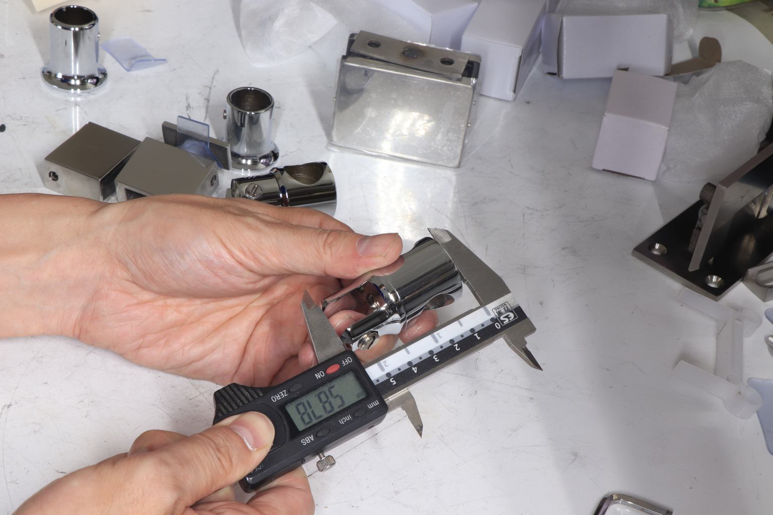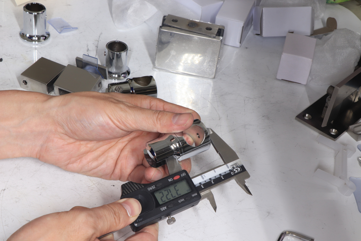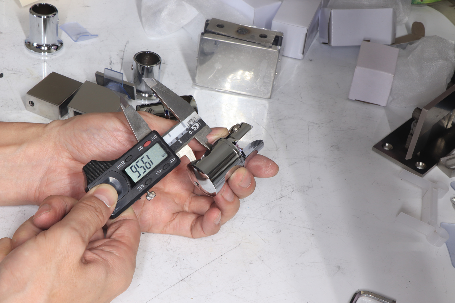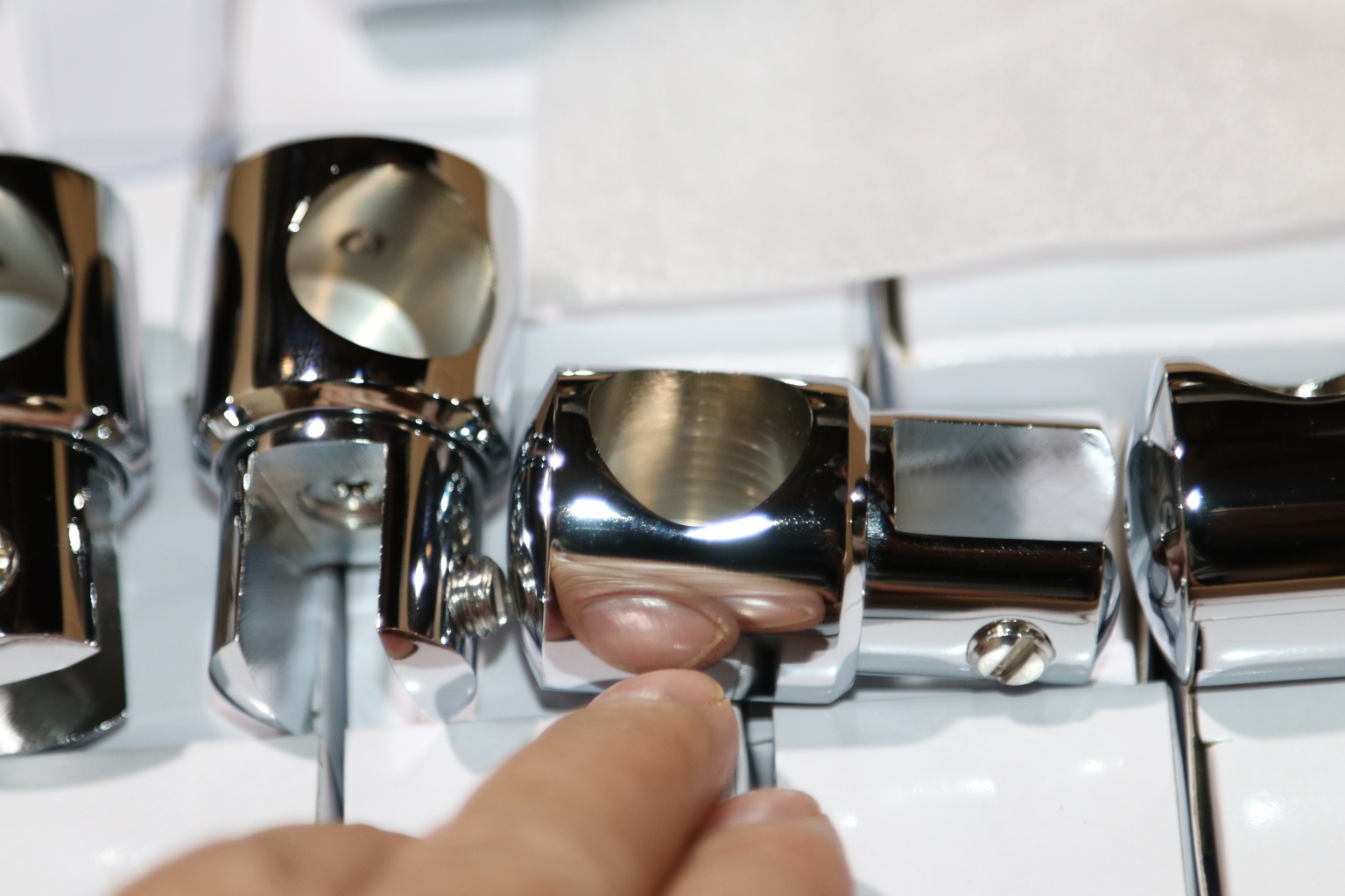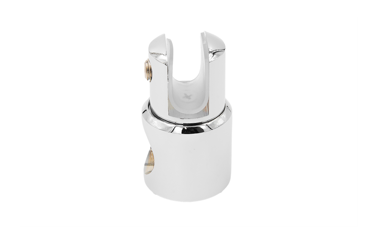 Крепежный элемент труба-стекло. Основная задача соединить окончание трека с кромкой стекла. Материал - цинк-хром, поверхность - полированная