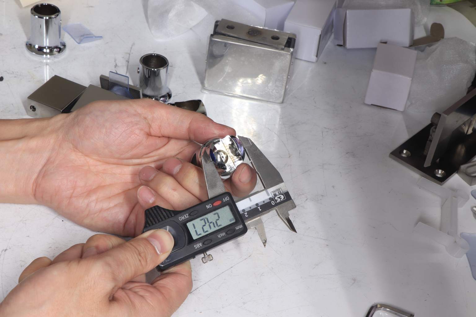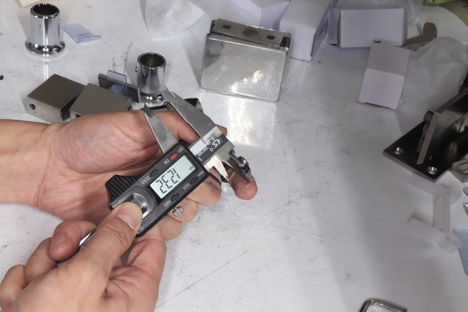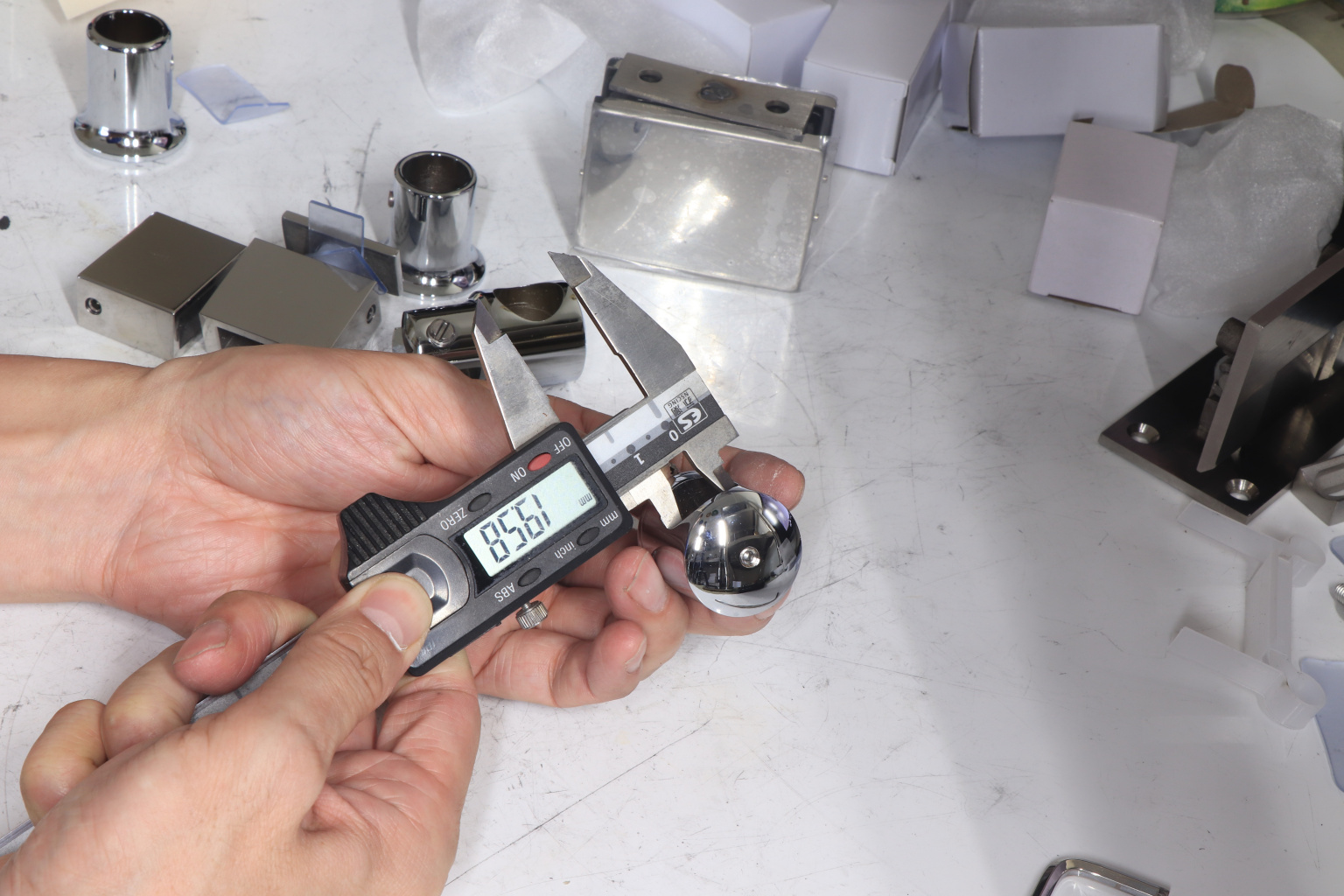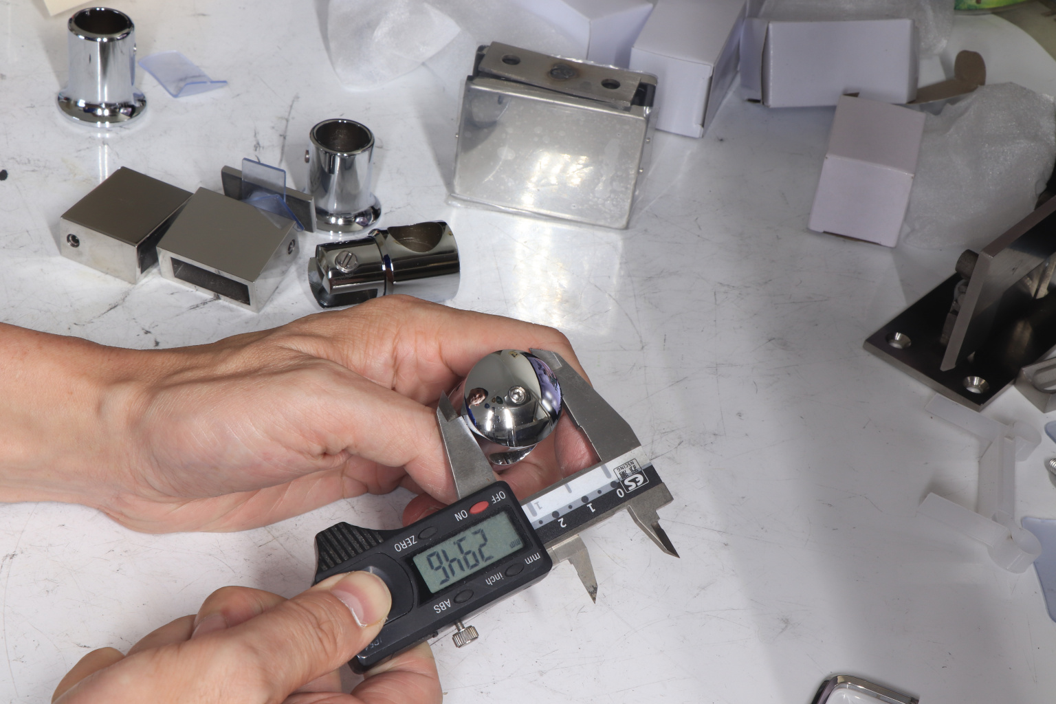 Крепежный элемент труба-стекло. Основная задача соединить окончание трека с кромкой стекла. Материал - цинк-хром, поверхность - полированная