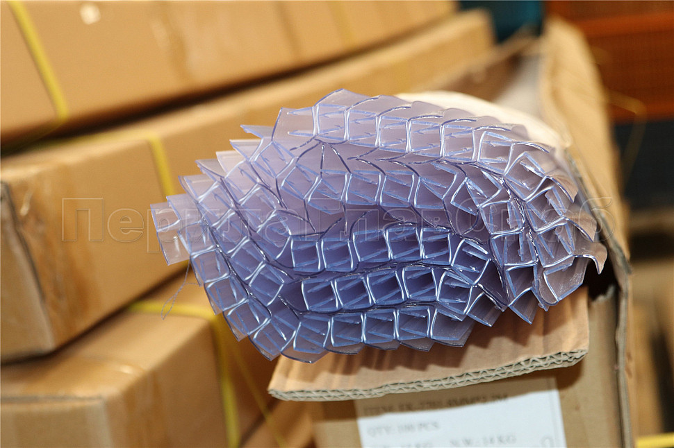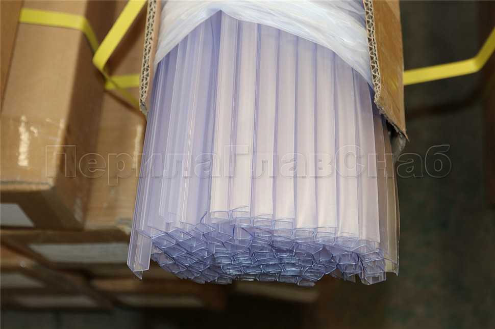 Уплотнитель имеет исполнение прозрачной поверхности, выполнен из материала ПВХ. Имеет П-образный профиль. Толщина одного типоразмера составляет 1.5 мм, длина – 2200 мм. За счет своих свойств (стойкость к щелочам, минеральным маслам и многим кислотам) прекрасно подходит для крепления стеклянного листа по всему периметру. Позволяет соединять стеклянные панели между собой. Данный уплотнитель применим в сочетании со стеклом толщиной до 8 мм и углом в плане до 1350.