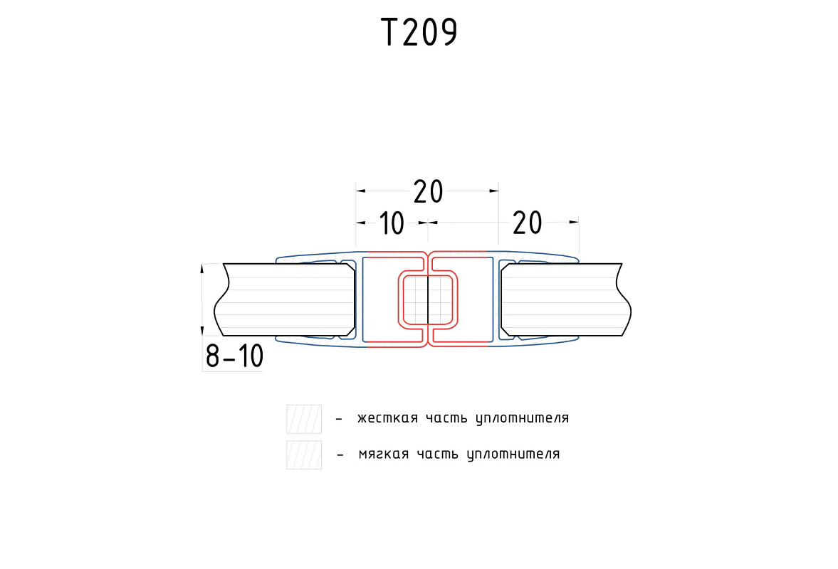Комплект уплотнителей для стекла в душевую кабину (2 шт.), стекло-стекло 8 мм, прозрачный, 180°, 2200 мм t209-2