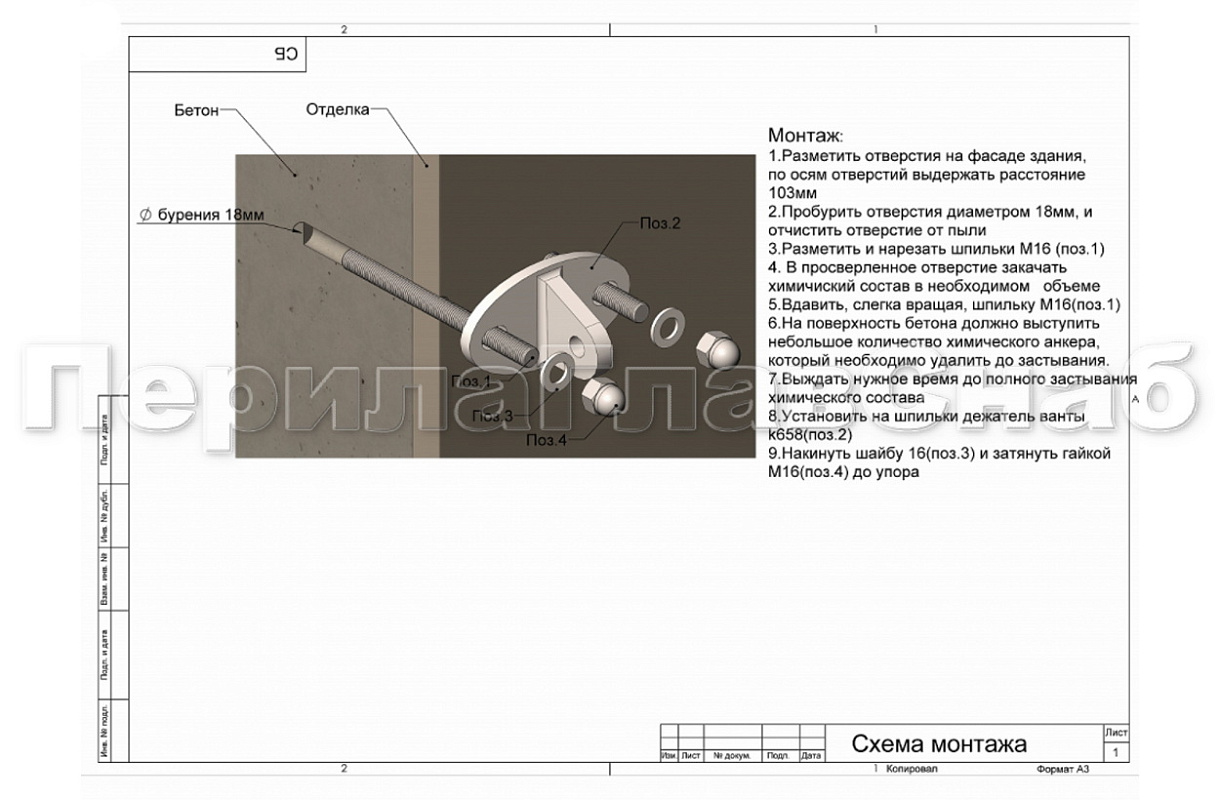 • Надёжность. Конструкция детали позволяет производить крепление на 2 шпильки и за счёт жёсткой фиксации не дает детали двигаться. Таким образом в процессе эксплуатации не происходит ослабление крепежа к стене.