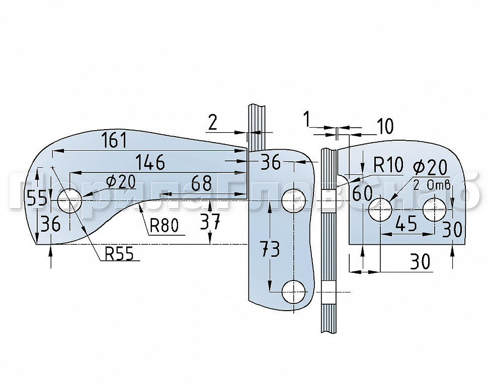 Фитинг угловой с осью и ребром жесткости, левый, шлифованный, марка стали- AISI 304