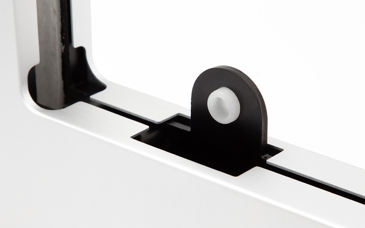 для соединения стационарной панели стеклянной перегородки с верхней фрамугой. Стопор ограничивает открывание двери в любую из сторон по выбору.