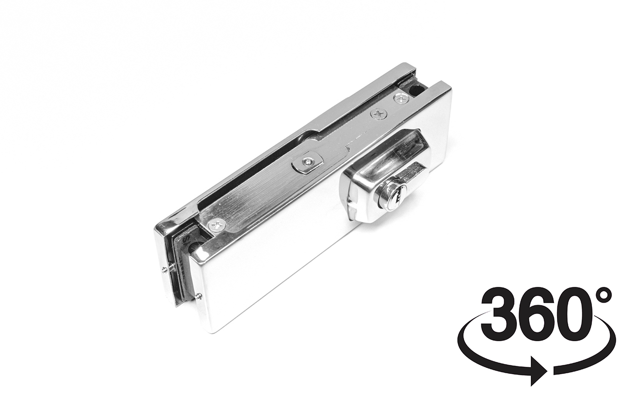Замок для стеклянной двери угловой с круглым ригелем комплект, полированный