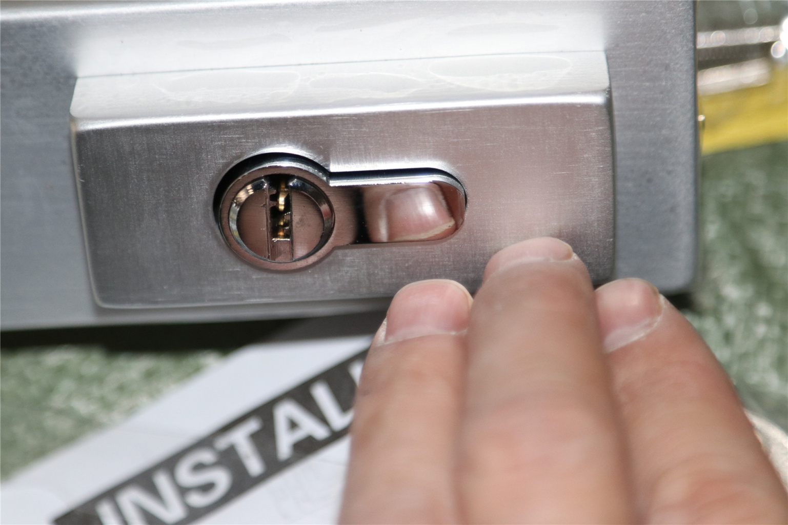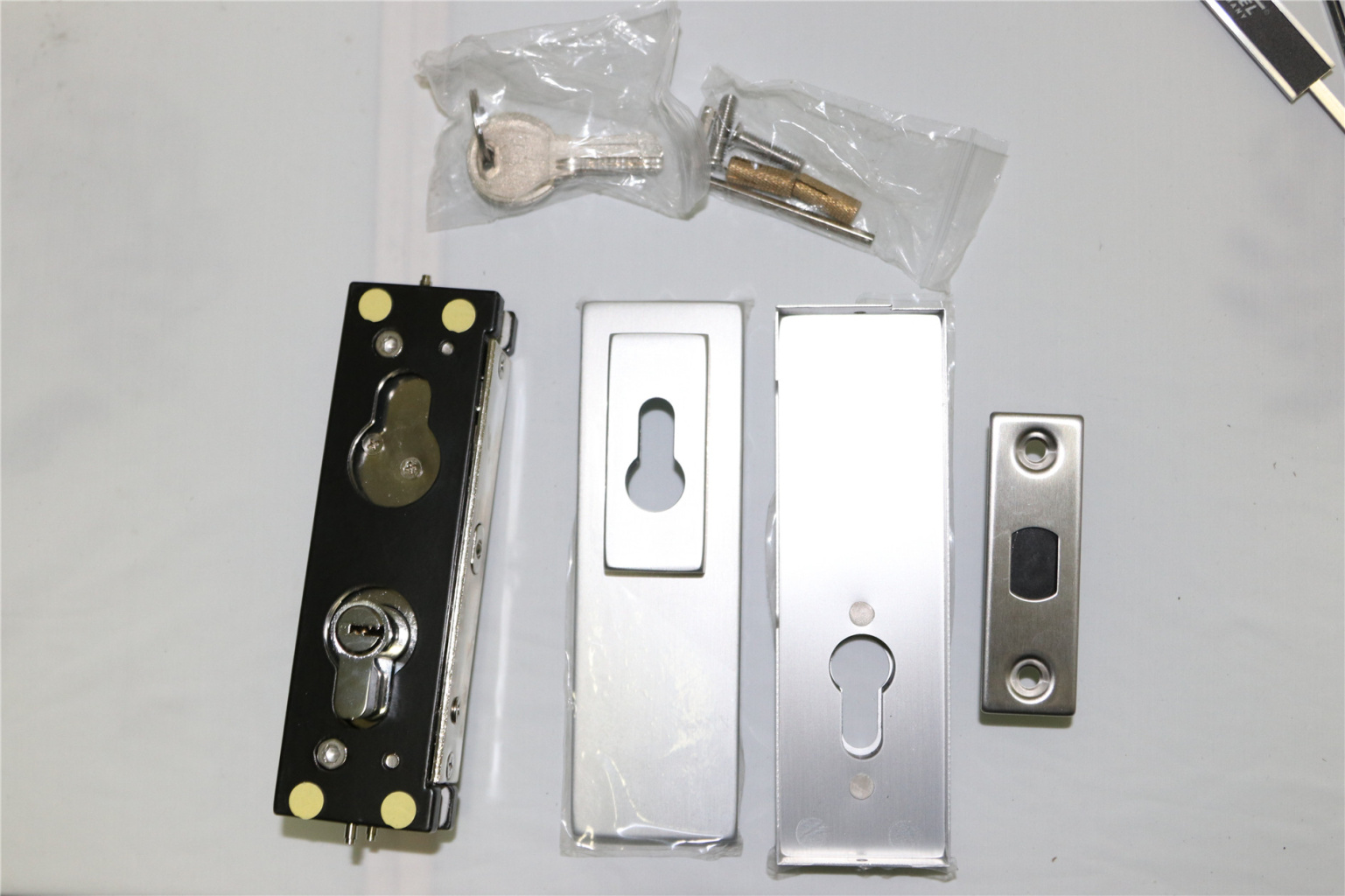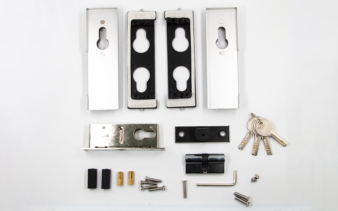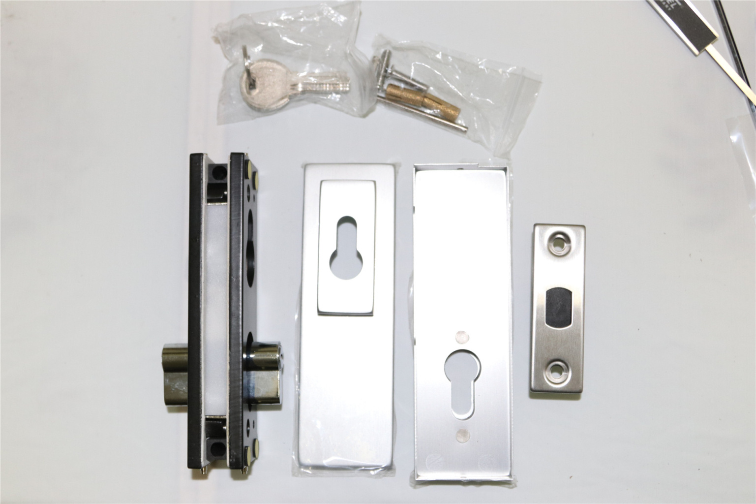 - Надежно запирает стеклянные двери. Проверено на практике: скорее не выдержит стеклянное полотно двери, чем ригельная часть замка.