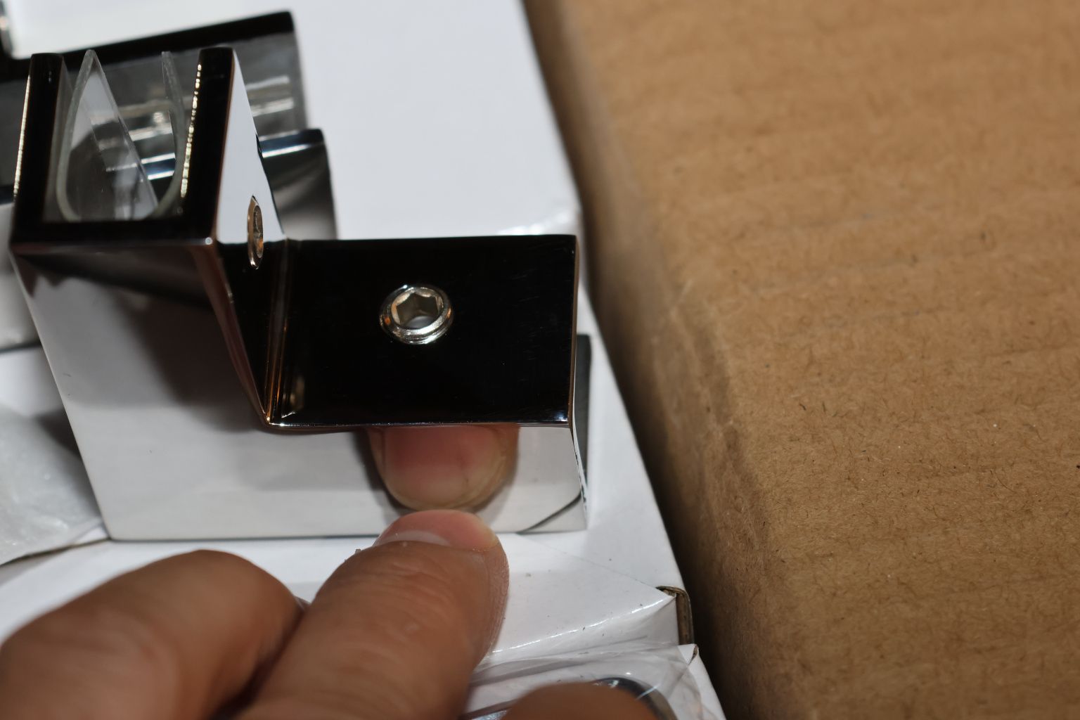 фиксируется на стекло с углом 90 градусов, без выреза в стекле и затягивается шестигранником