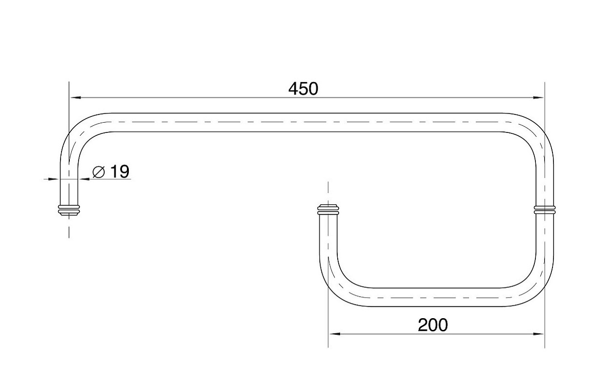 Ручка двухсторонняя для стекла 8-12 мм, 32x300x450 мм, AISI 201, шлифованная t633-450-3 SSS