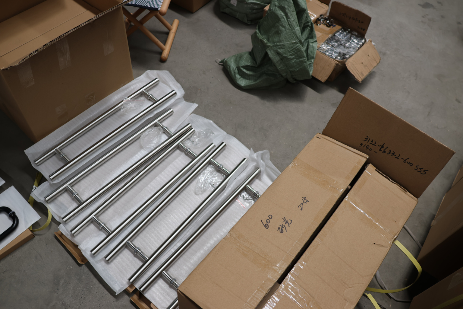 у основания ручки откручиваем с помощью шестигранника винты, делим ручку на две части, в заранее заготовленные отверстия вырезы в стекле 10-12 мм фиксируем первую часть ручки в отверстиях и с обратной стороны ответную часть затягиваем с помощью шестигранника