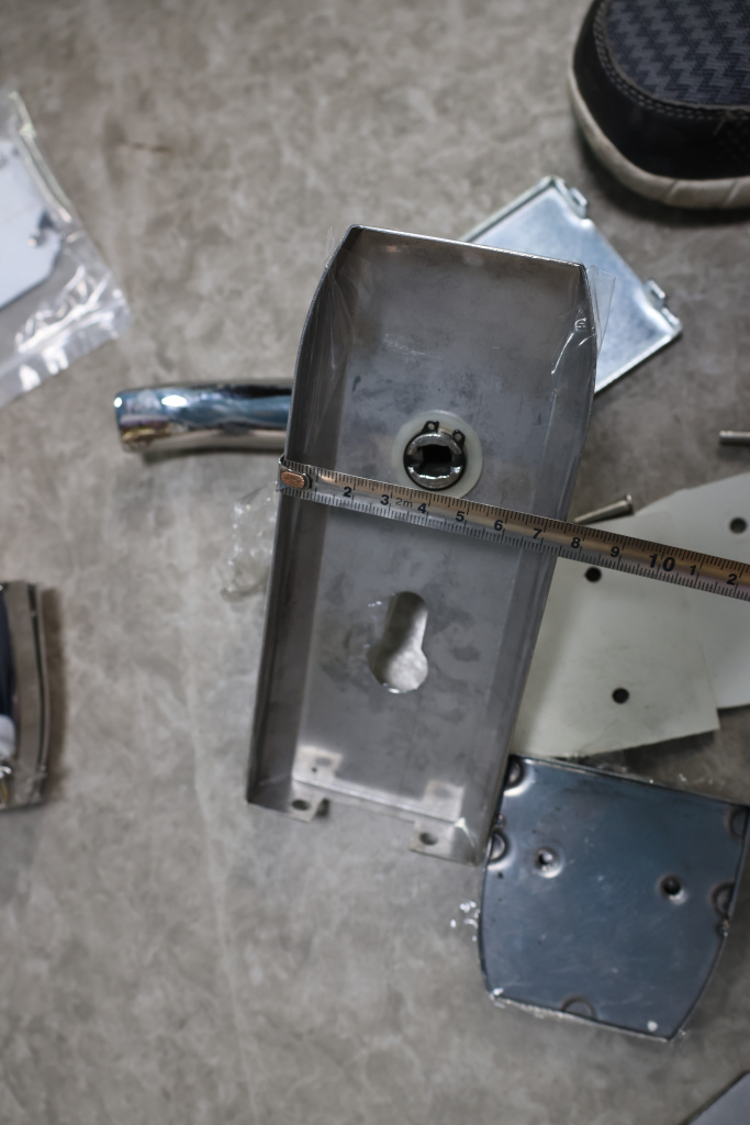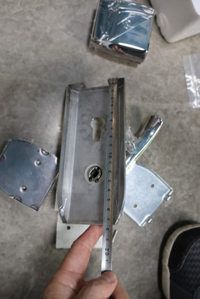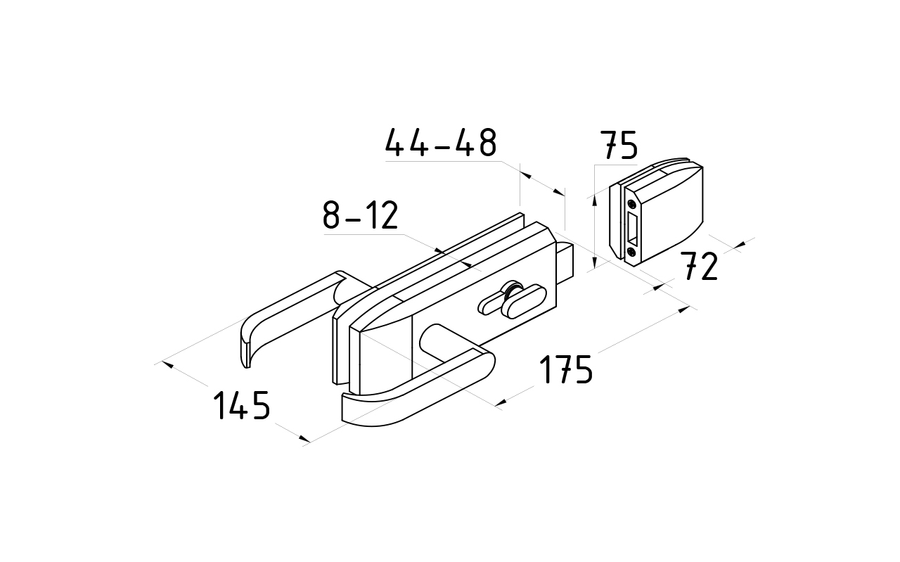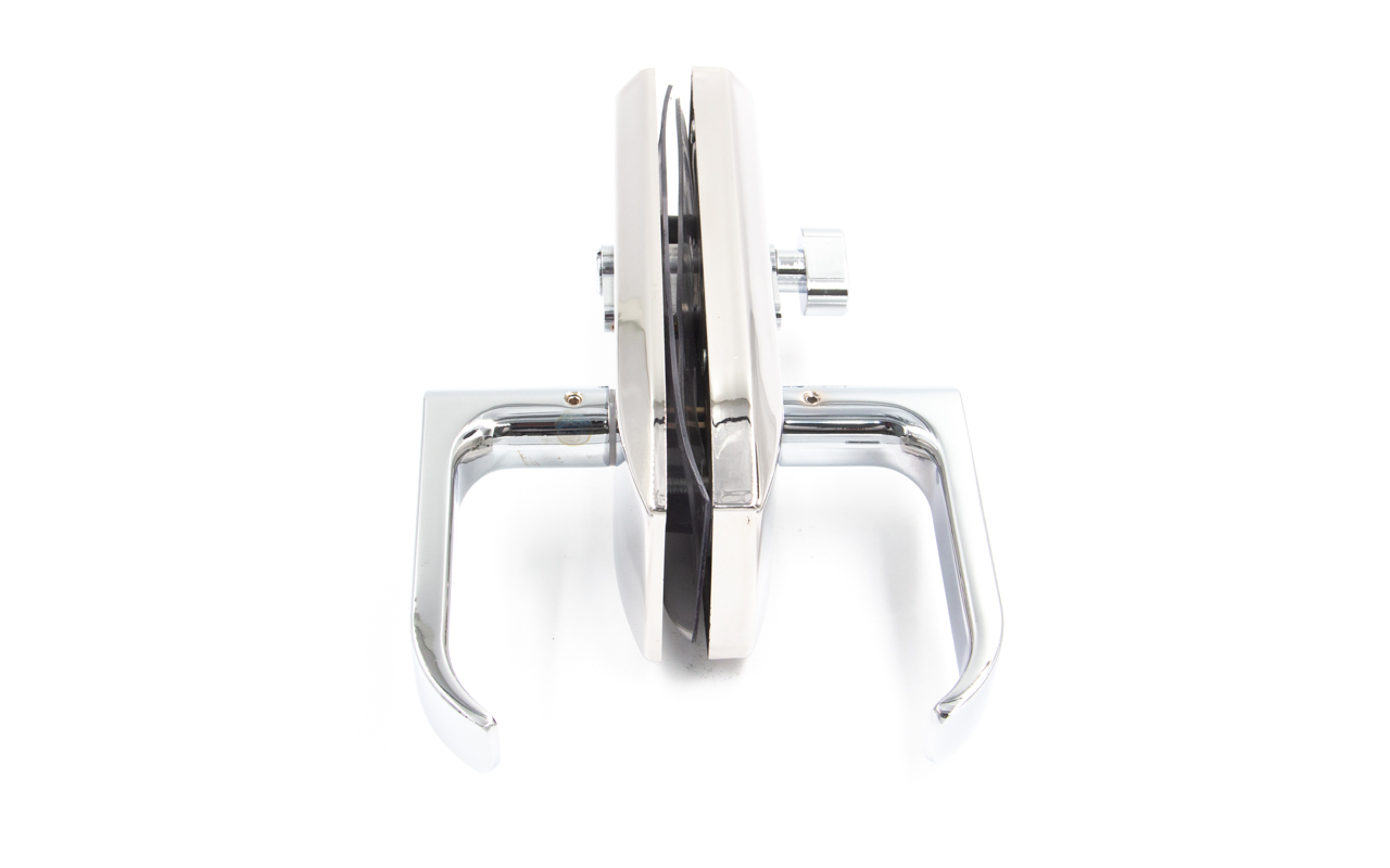 Замок с нажимной ручкой монтируется на стеклянную дверь, толщина стекла 8-12 мм.
