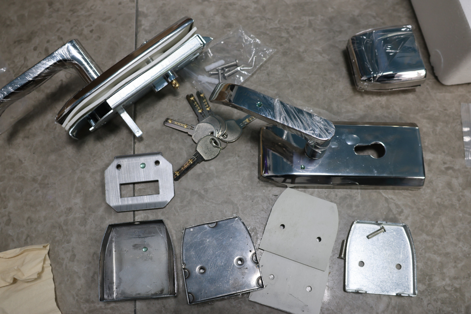 Замок с нажимной ручкой, евроцилиндр односторонний ключ/защелка, с ответной частью на стекло, полированный