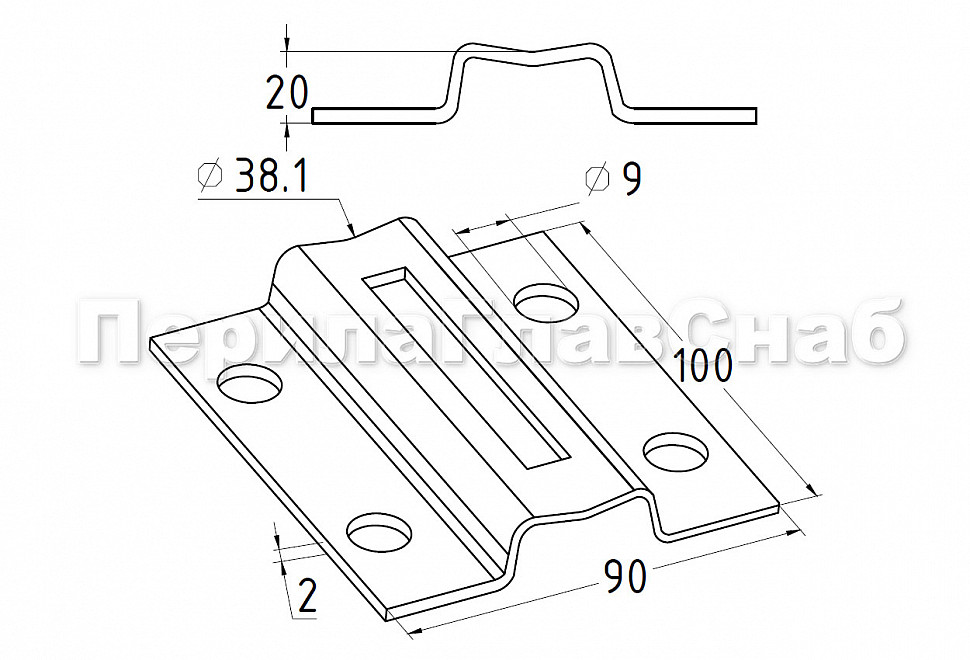 Боковой крепеж пластина под Ø38.1 мм, h=20 мм, t=3 мм, Prima k056-5