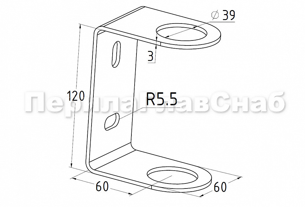 Более технологичная и мощная деталь по сравнению с k056. Крепеж предназначен для выноса стойки ограждения от лестничного марша, там где это нужно.