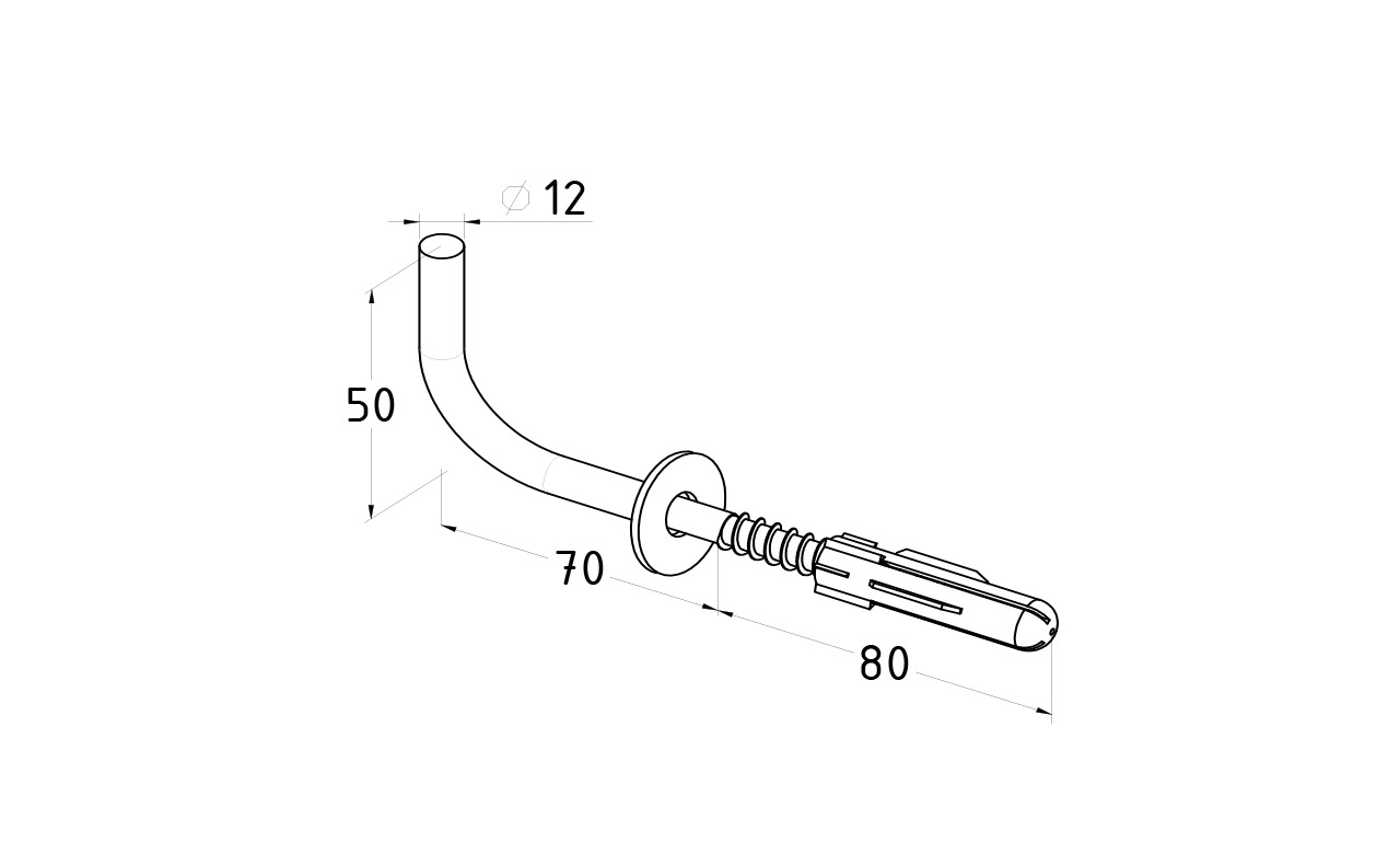 пристенок с саморезом и шайбой 12х80, без ложемента, (симбиоз прутка, глухаря) + дюбель и шайба А2