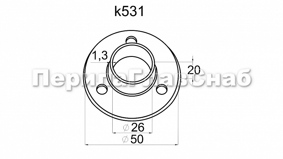 Фланец для трубы Ø25.4 мм, штампованный, полированный (AISI 304) k531