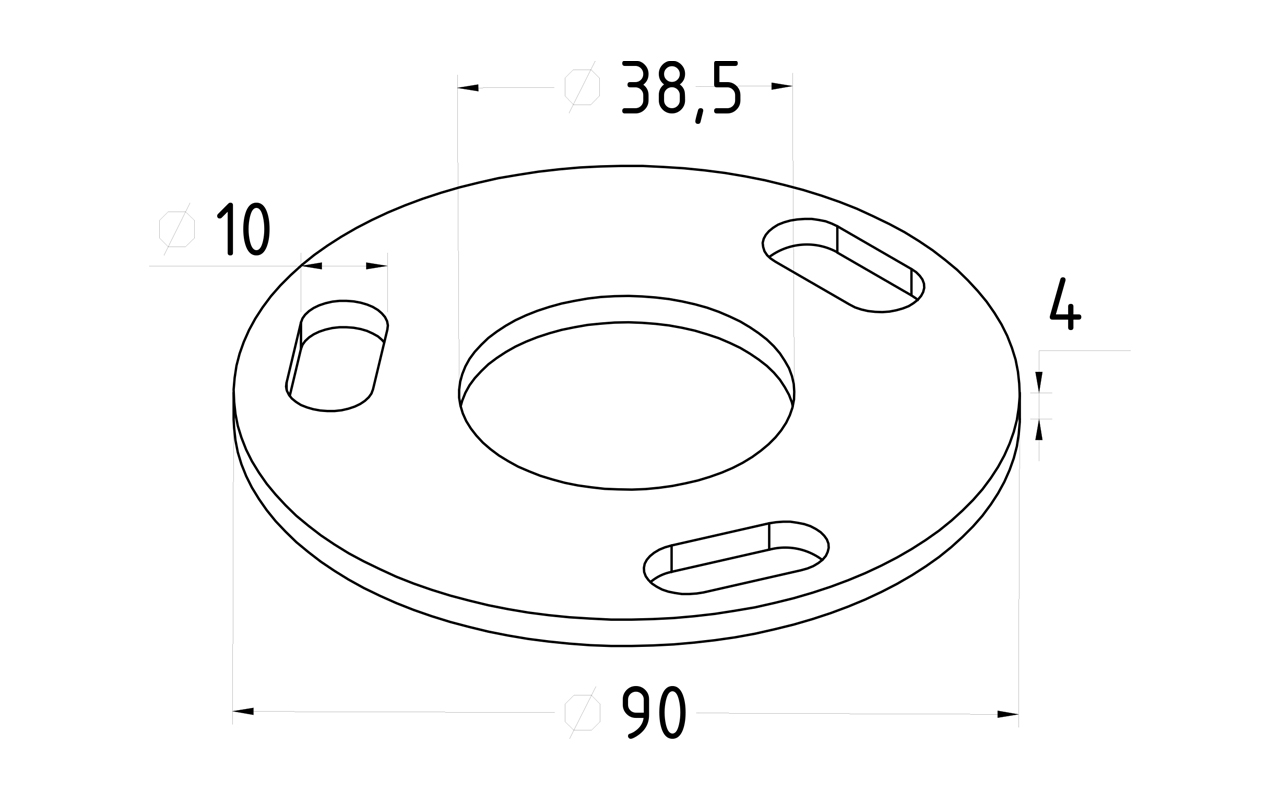 Фланец стойки 38/90 х 5 (4,3), #200 3 отв х М10 х 20, марка стали- AISI 304