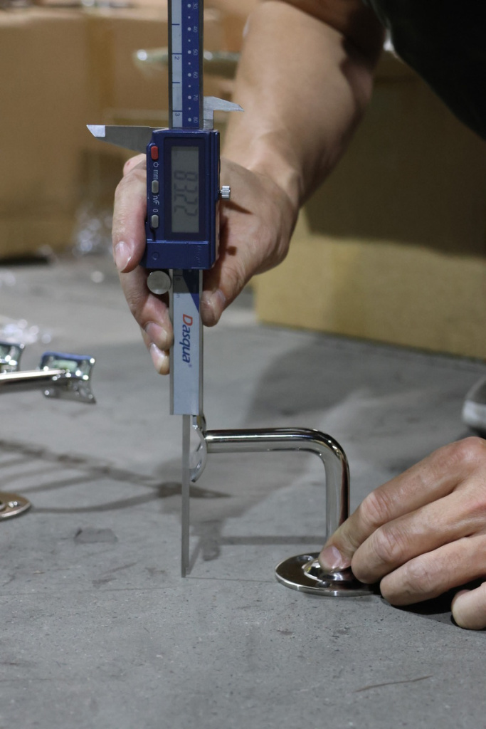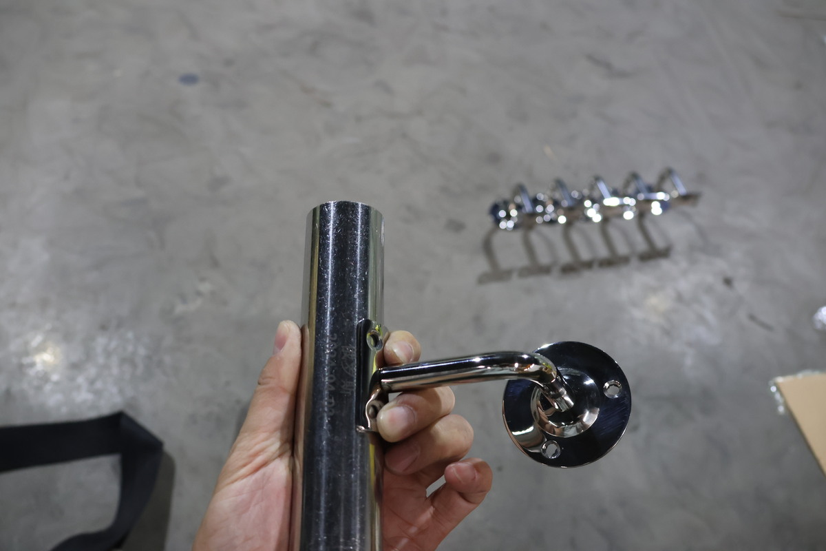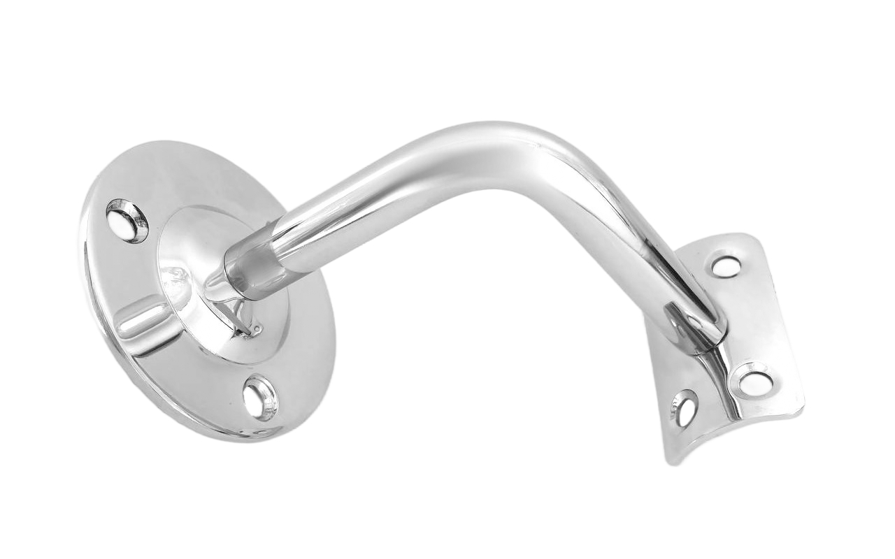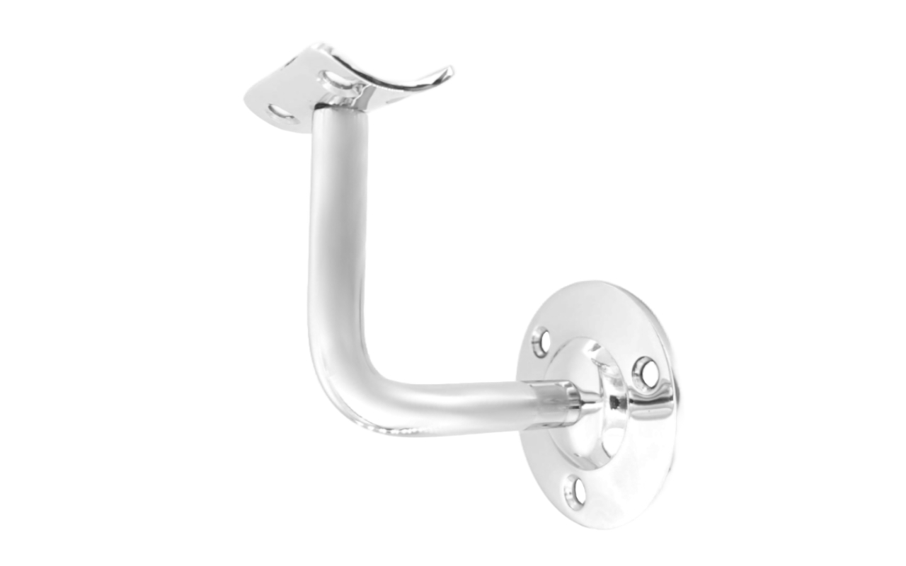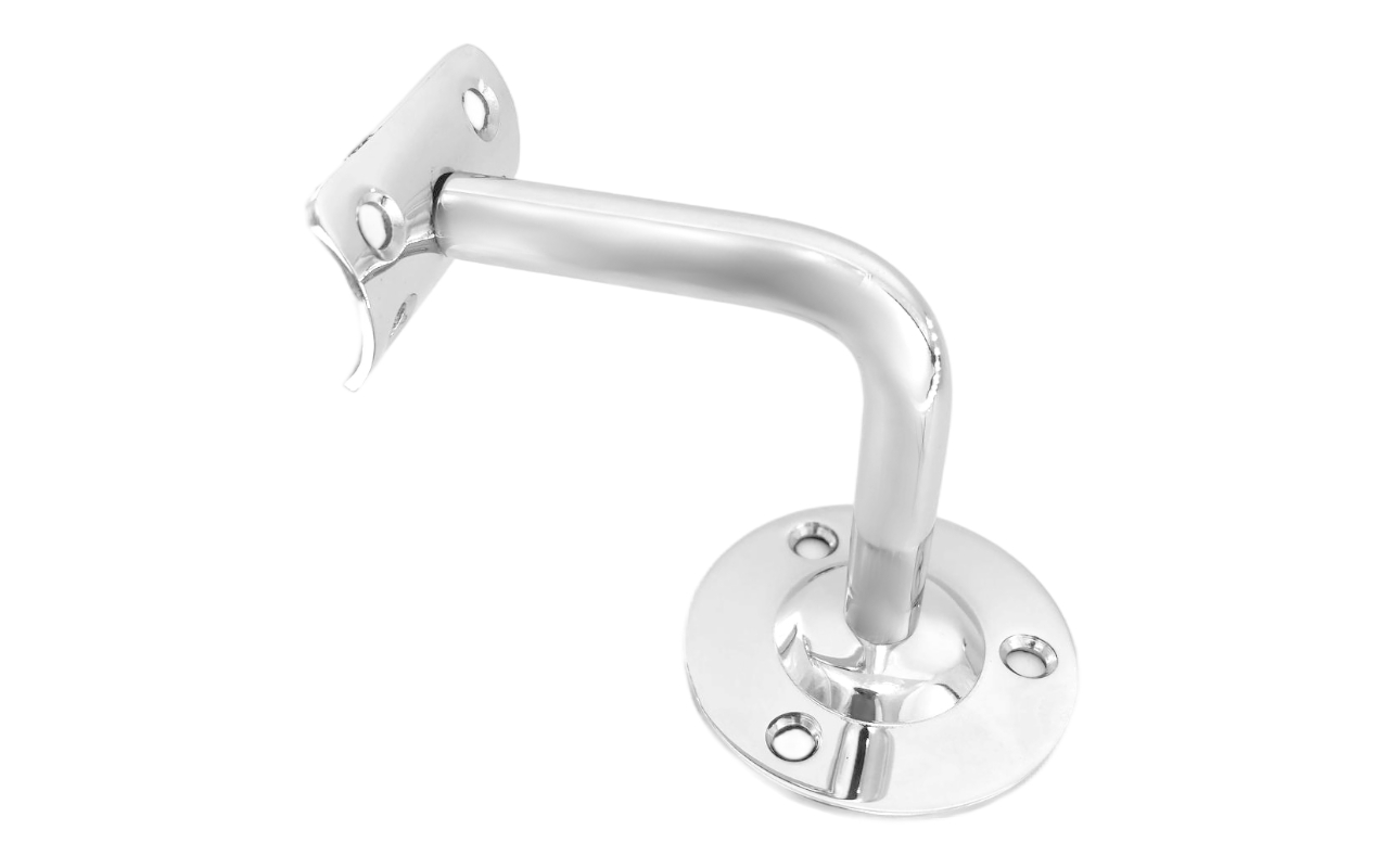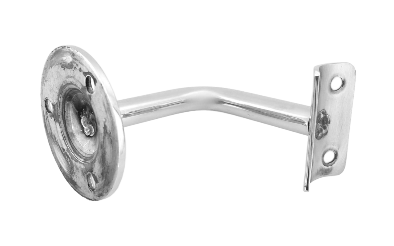 К стене стальной держатель крепится фланцем на три самореза Ø3 мм. Поручень крепется на саморезы или на сварку.