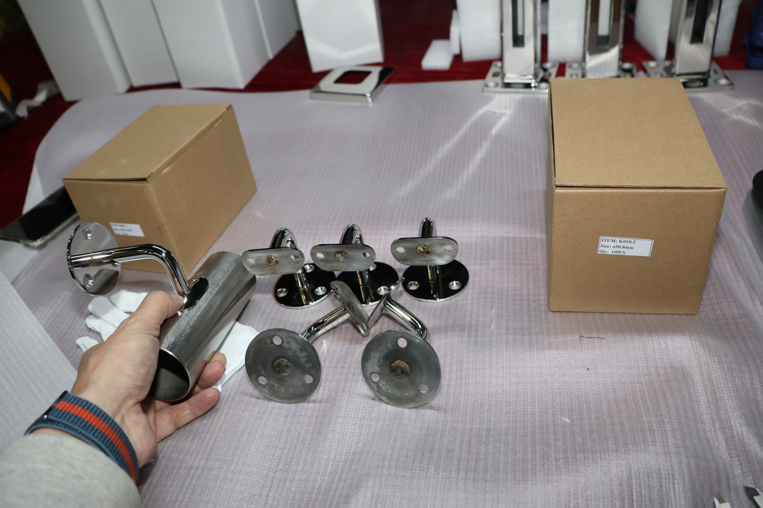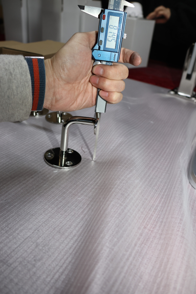 Благодаря оптимально подобранному выносу, пристенный поручень достаточно удален от поверхности стены, чтобы не задевать скользящей вдоль трубы поручня рукой идущего по лестнице человека. Но при этом поручень располагается близко к стене, дабы не сужать свободное пространство полезной ширины лестничного марша.