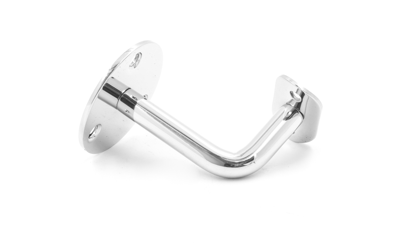 Благодаря оптимально подобранному выносу, пристенный поручень достаточно удален от поверхности стены, чтобы не задевать скользящей вдоль трубы поручня рукой идущего по лестнице человека. Но при этом поручень располагается близко к стене, дабы не сужать свободное пространство полезной ширины лестничного марша. Габариты: вынос 70х45 мм, Ø60х3мм, ложемент 25 х 45 х 2 мм