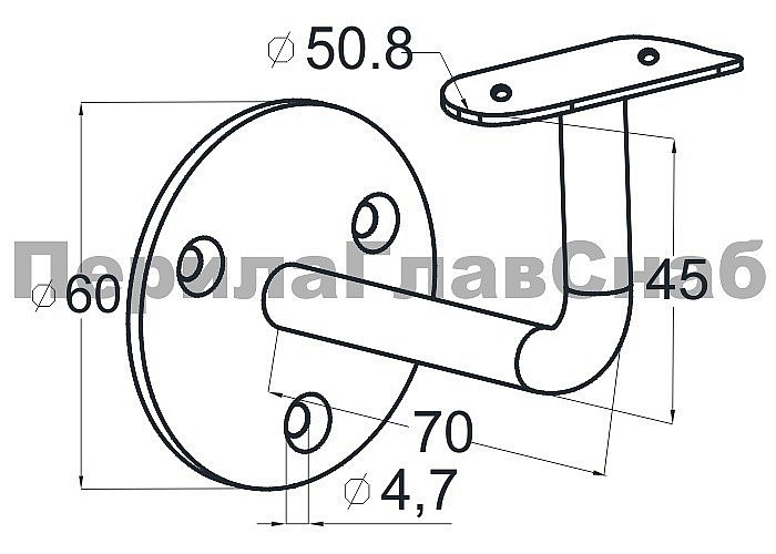вынос 70х45 мм, фланец Ø60х3 мм, ложемент 25х45х2 мм, под трубу Ø50.8 мм