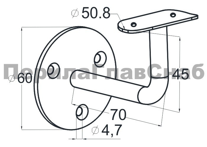 Применяется для бокового крепления нержавеющего поручня под сварку или на саморезы.