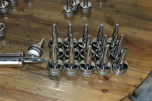 Наконечник палец (солдатик) с системой фиксации из алюминия в стойке диаметром Ø38.1х1.5 мм. Наконечник полированный, литой, нержавеющий. Марка стали - (AISI 304)