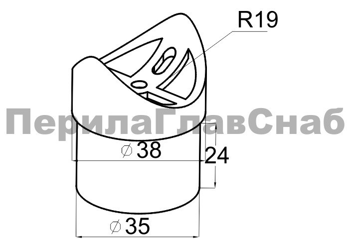 Наконечник седловина прямая 90° на стойку диаметром 38.1 мм, под поручень диаметром 38.1 мм. Деталь литая, полированная. Марка стали - AISI 304