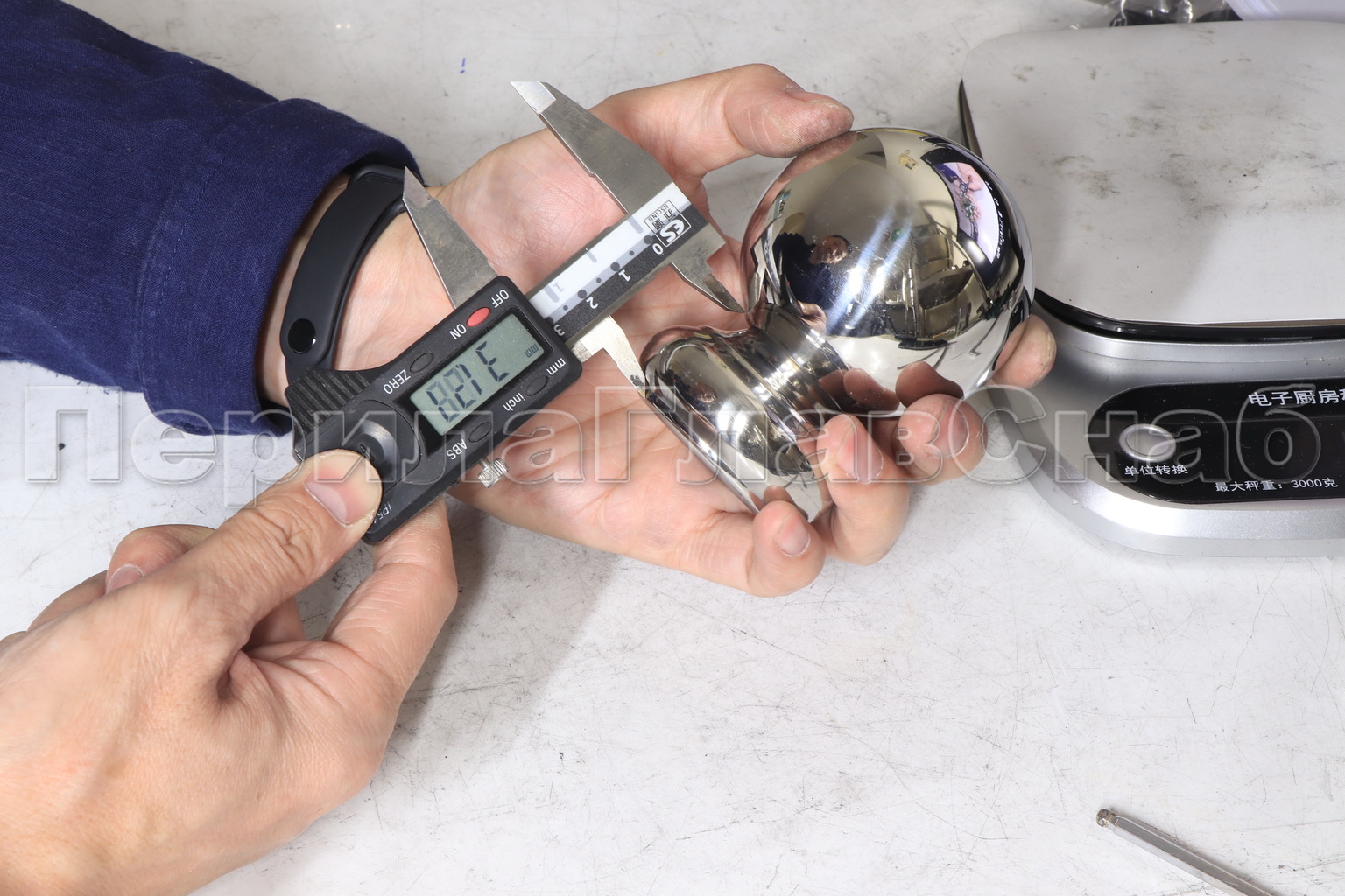 Наконечник шар на стойку диаметром 38.1 мм. Деталь штампованная, полированная, 400 Grit. Материал детали - AISI 201
