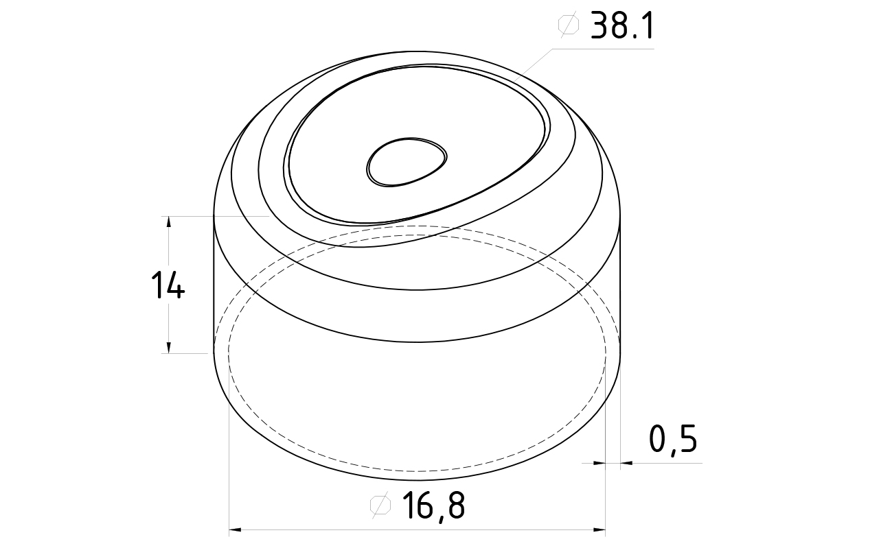 k211- наконечник штампованный (СПС) прямой 90° на трубу Ø16 мм, для поручня Ø38.1-50.8 мм, полированный, нержавеющий. Марка стали - AISI 304. Деталь можно использовать в агрессивной среде.