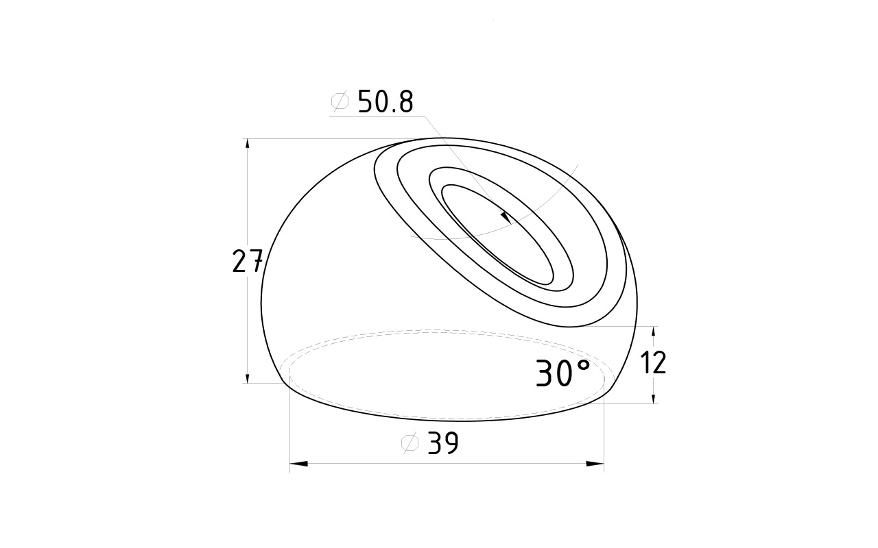 Наконечник штампованный (СПС) косой 30° на трубу Ø38.1 мм, для поручня Ø38.1 мм, полированный, нержавеющий, AISI 304, k016-2