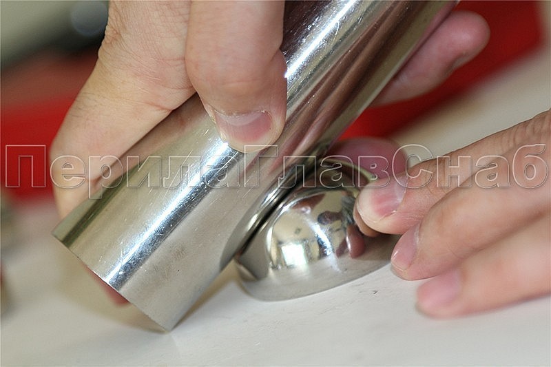Самый распространенный тип наконечников для соединения круглых стоек и круглых поручней на наклонных маршах (прямых площадках используется k017-2.