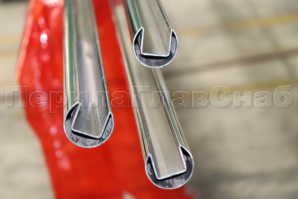 Труба Ø48.3 мм, с пазом 27х30 мм под стекло, полированная (AISI 201) k822 купить в Санкт-Петербурге
