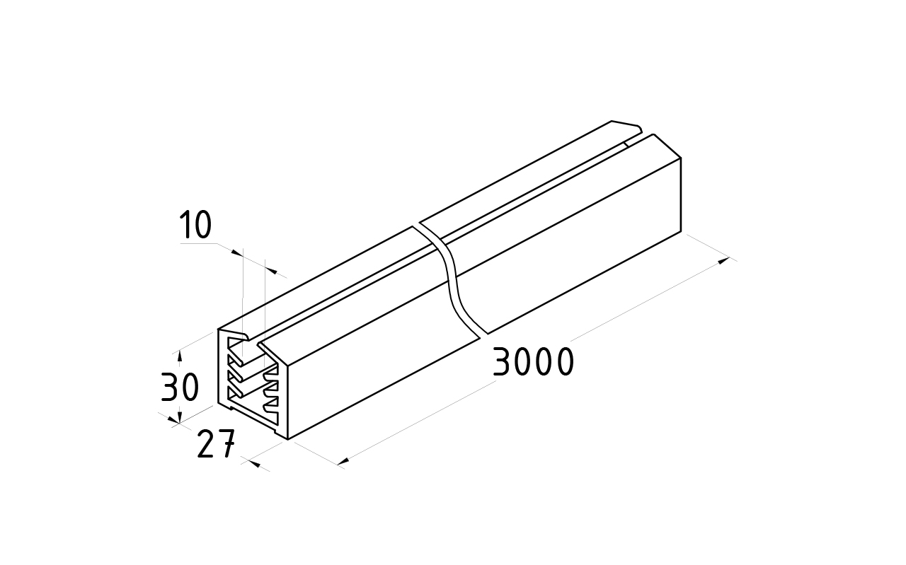 Уплотнитель в поручень с пазом 27х30 для стекла 10 мм EPDM (палки 3 м)