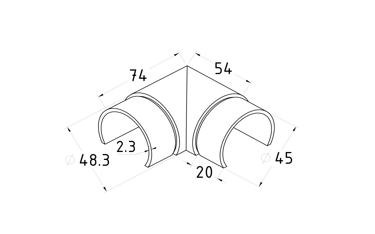 Отвод с пазом на трубу Ø48.3 мм, полированный (AISI 304) k237