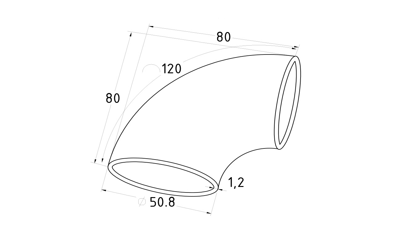 Отвод поручня под сварку для трубы Ø50.8х125х1.2 мм, полированная 400#. Марка стали - AISI 201