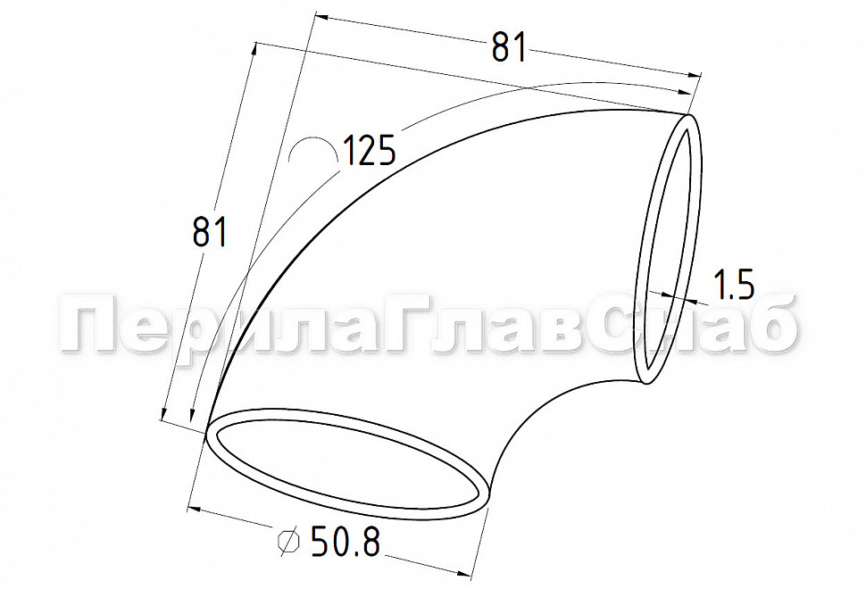 Отвод поручня под сварку под Ø50.8 мм, 400 Grit, (AISI 201) k021-8